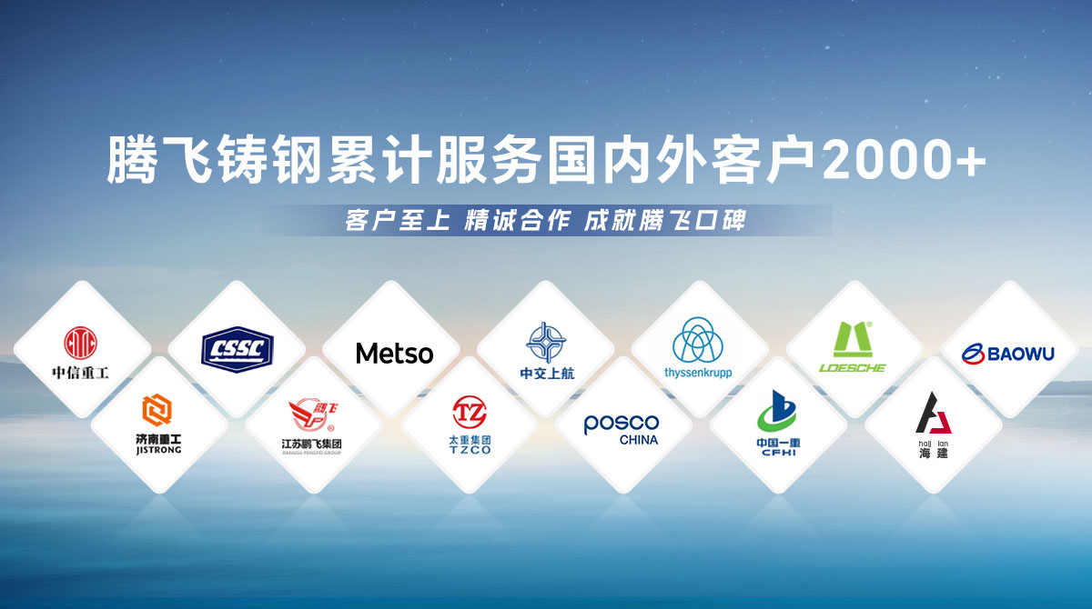 騰飛鑄鋼成立于2006年,位于全國鑄造基地河南省新鄉市,擁有員工300余人,是一家從事150噸以下碳鋼、低合金鋼、不銹鋼鑄鋼件研發、制造、服務為一體的國家高新技術企業?! 」就ㄟ^了ISO9001國際質量管理體系認證,擁有2項發明專 利,2項河南省科技成果、25項實用新型技術,通過了“環保績效評級B級企業”驗收,先后榮獲“河南省鑄造行業綠色發展企業”、 “河南省科技型中小企業”、“河南省專精特新中小企業”等榮譽稱號。  公司擁有2臺25噸電爐,4臺大型天燃氣熱處理爐、10米回旋自動拋丸機一臺, φ8m數控立車、φ10m數控滾齒機等各類高精裝備100余臺套,年產能3萬余噸,能為客戶提供從產品設計、木模加工、大型鑄造、大型加工一站式服務,產品廣泛應用于建材、冶金、鍛壓、冶金、水工、路橋、化工等多個重型行業。  長期服務于中信重工、中船重工、美卓、上海中交、萊歇、寶武、濟南重工等全球知名企業,在行業內擁有較高的市場知名度和美譽度。